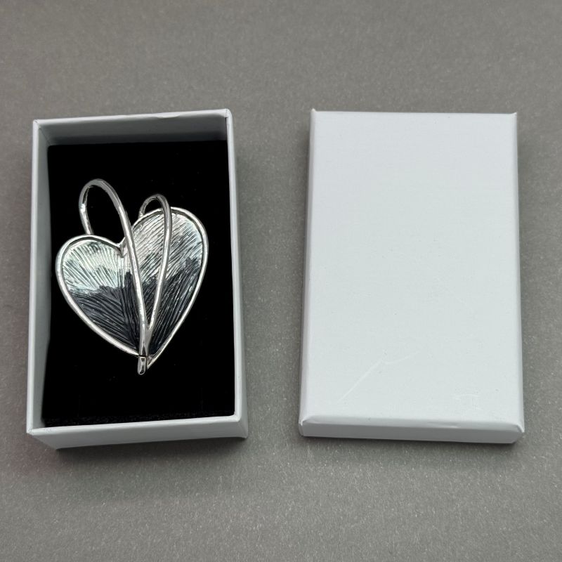 This gorgeous Heart Shaped Brooch is presented in a gift box. This brooch is ideal for pinning a scarf or wrap, but also can be worn as a stunning Heart brooch on a coat or top.