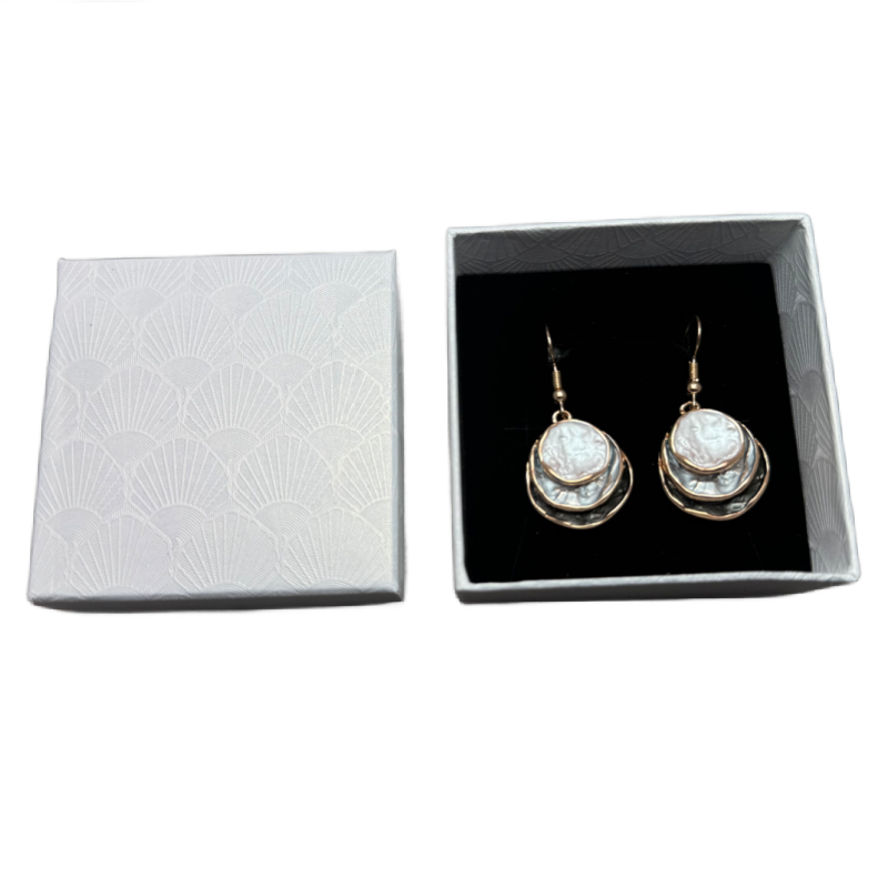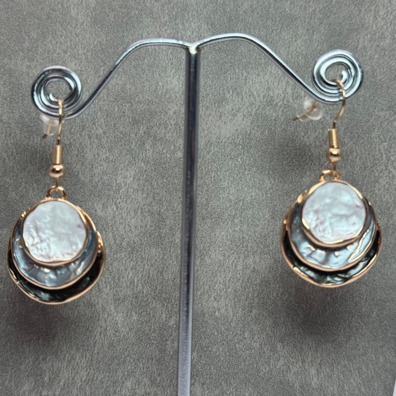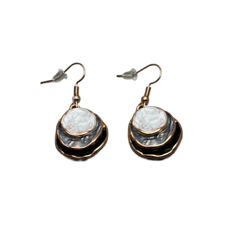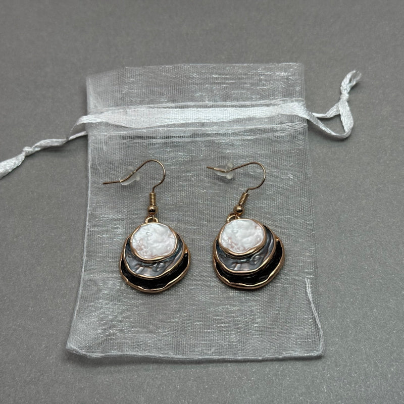 This gorgeous Boho style Enamel Earrings are Zinc Alloy plated with 3 round disc layers of grey coloured tones. and a rose gold edge.