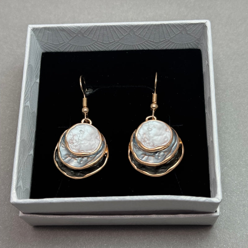 Enamel Grey 3 Layer Round Dangling Earrings